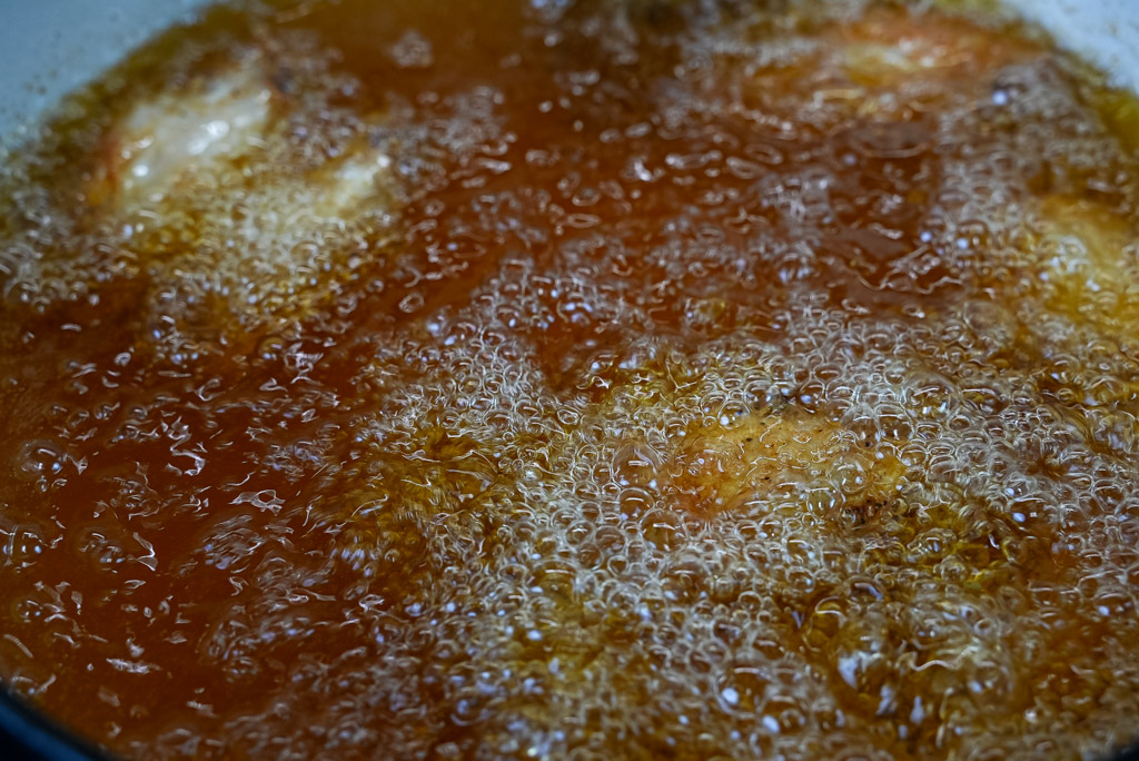 Once the oil has reached the desired temperature, carefully fry the wings in small batches of about 5-10 pieces at a time.