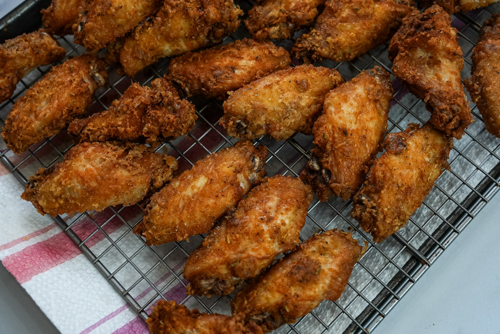Transfer the fried wings to a wire rack to drain excess oil. Repeat this process until all the wings are cooked to perfection.