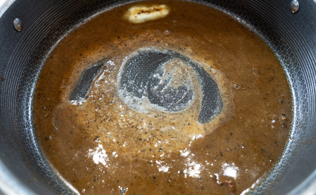 - Add in chicken broth to deglaze pan and follow up with butter.