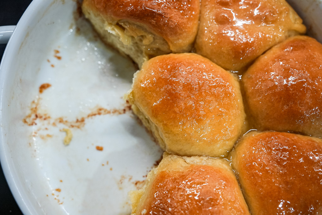 - Once rolls are out of the oven, brush generously with honey butter. Serve warm and enjoy!