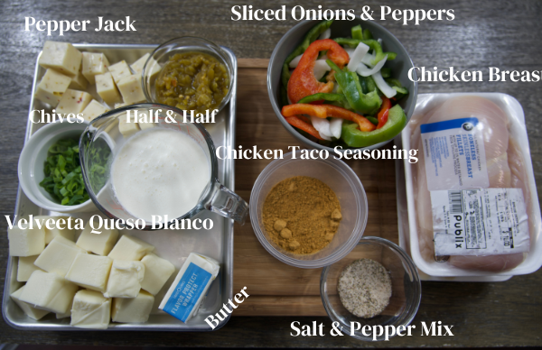 - Cheeses: Using pepper jack cheese and velveeta queso blanco cheeses create the perfect quest dip. Adding a hint of spice as well as a smooth consistency.