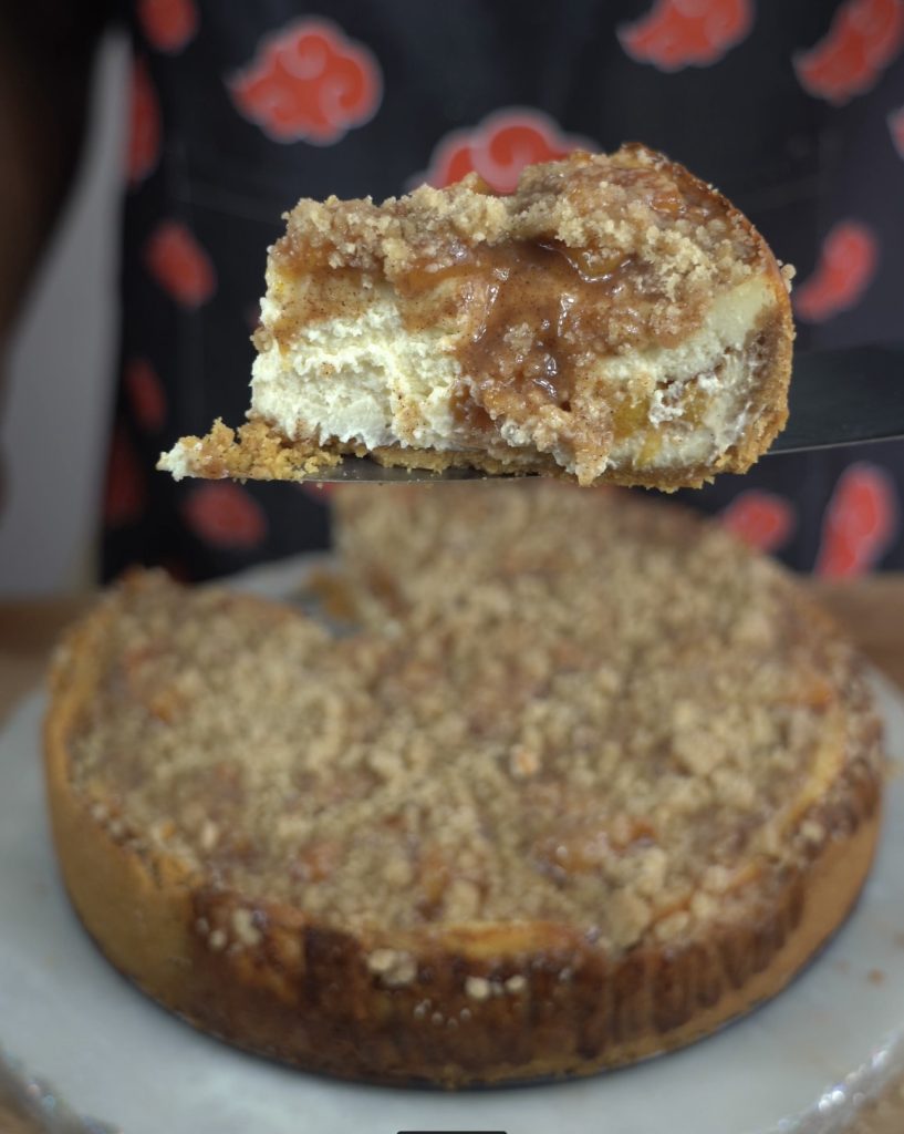 This Peach Cobbler Cheesecake is filled with a peach cobbler filling and a crunchy cinnamon crumble. This is an absolute explosion of flavor.